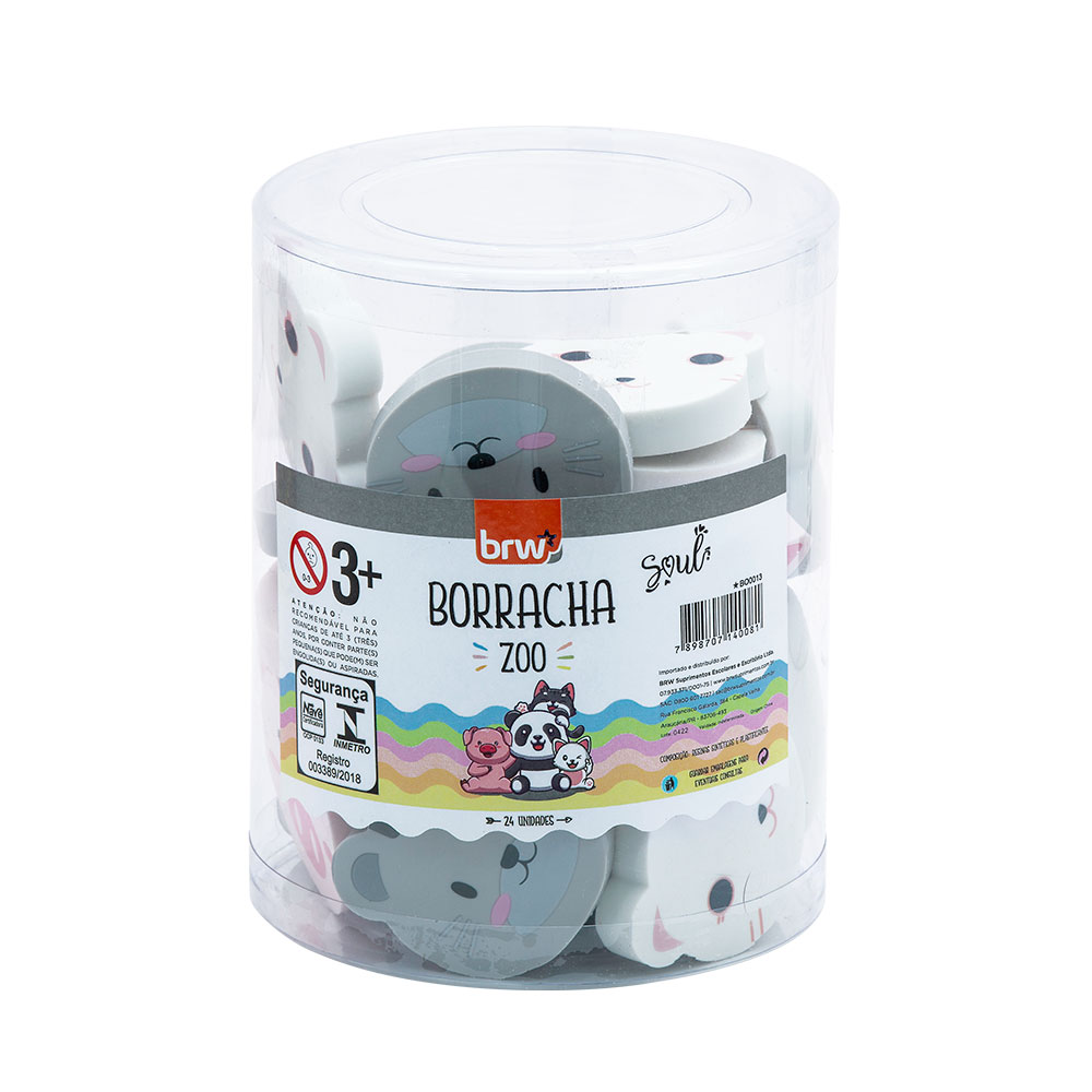 4 formatos de bichinhos: porco, panda e 2 de gatos. Maciez e suavidade que permite apagar com precisão diversos tipos de grafite sem borrar, enrugar ou manchar o papel.