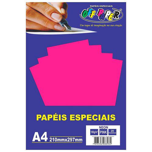 Papel colorido com efeito neon. Embalagem com cores únicas nas opções pink, amarelo, laranja e verde. Pacote com 20 folhas. Gramatura: 180. *Foto ilustrativa, as cores podem ter variações de tonalidade.