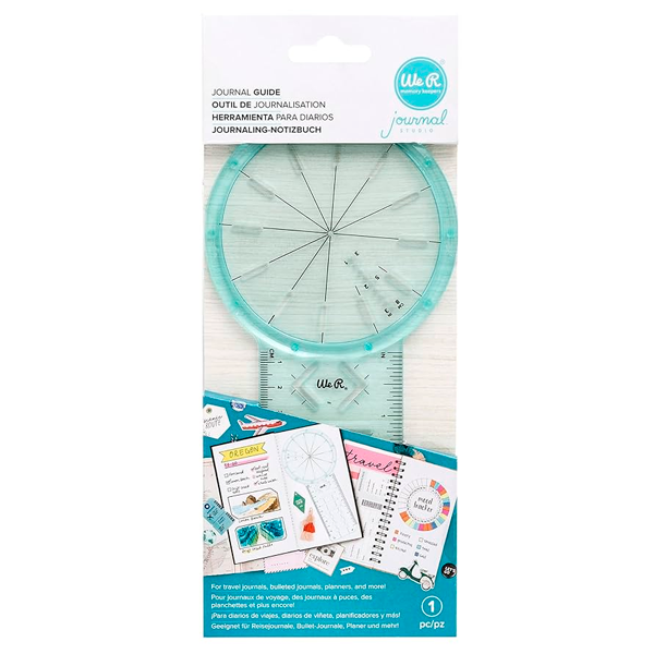 Crie o diário dos seus sonhos com o Journal Guide by We R Memory Keepers! Esta ferramenta exclusiva de registro no diário permite criar seções personalizadas em diários de viagem, diários de marcadores, planejadores e muito mais. Faça listas de verificação com os guias de círculo, quadrado e linha. Use o guia rotativo para criar círculos perfeitos e adicione seções para criar rastreadores de metas e registros. Você pode até mesmo dobrar seu papel favorito em torno da base da ferramenta, colá-lo e colocá-lo dentro de seu diário para impressões e lembranças Instax! O Guia de registro no diário também apresenta canto arredondado, um ângulo de 45 graus e lados de ângulo reto para criar banners divertidos! Se você pode sonhar, você pode fazê-lo com o Journal Guide por We R.